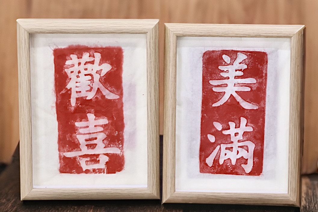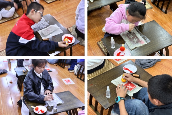 拓印是一项将器物表面纹理、文字或图案复刻于纸张的传统技艺,被誉为“古代的复印机”,是传承文物信息与艺术价值的重要载体。 随着拓印工具陆续分发到位,活动进入最令人期待的实操环节!在老师的细致指导下,大家先将宣纸平整覆盖在拓碑上,用喷壶轻轻润湿,再手持拓包蘸取适量墨汁,顺着纹理均匀敲打。从控墨力度到敲击节奏,每个人都专注投入,小心翼翼地复刻着传统纹样。当一幅幅拓印作品成型,大家小心翼翼将其装入精致相框,举着专属的非遗手作互相展示,笑容里满是成就感,让千年拓印技艺在指尖传承,美好瞬间永久定格。